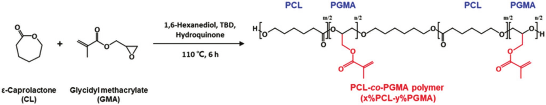 图4.ε-己内酯与甲基丙烯酸缩水甘油酯的共聚反应获得化学可交联的形状记忆聚合物