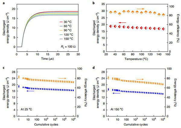(a)在不同温度下的能量放电行为(充电电场为100 MV m–1);