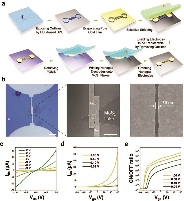 图四、基于转印的纳米间隙电极的短沟道MoS2晶体管