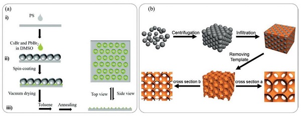 (b)钙钛矿反蛋白石的制备路线的示意图。
