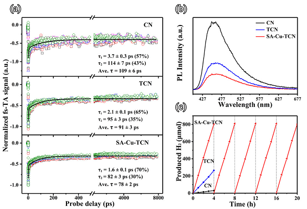 a) 单原子铜/C3N4与参比样品的超快吸收谱