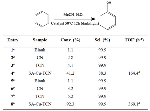单原子铜/C3N4催化剂的可见光催化苯的氧化性能