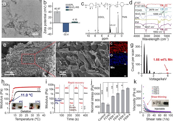 (g)EDS测定了FEMI水凝胶中Mn离子的含量。