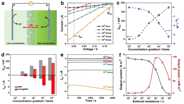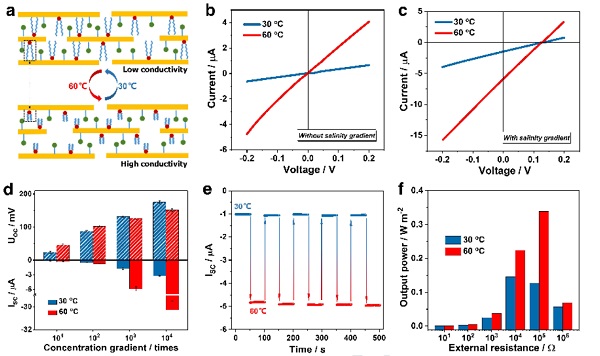图4. 二维温度门控阳离子通道应用于渗透能收集