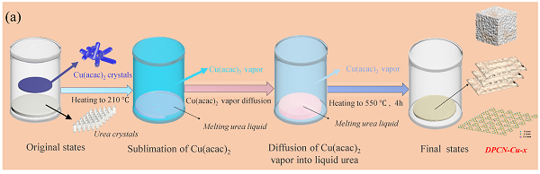 针对在光催化剂中构筑的单缺陷往往不能同时提高光催化反应中多步骤串行反应效率的难题,本文提出了一种双缺陷工程策略,基于气相扩散方法在PCN结构中同时构筑了浓度和种类可控的氮空位缺陷和单位点铜缺陷。其中PCN中的氮空位缺陷能有效拓展PCN光催化剂的可见光吸收范围,单位点铜则通过与氮原子间的协同作用显著增强了光生电子-空穴对的分离和传输,维持了载流子动力学,从而实现了高效光催化制氢。上述工作为从原子水平理解和优化缺陷工程策略,从而实现高效人工光合作用提供了新的研究思路。
