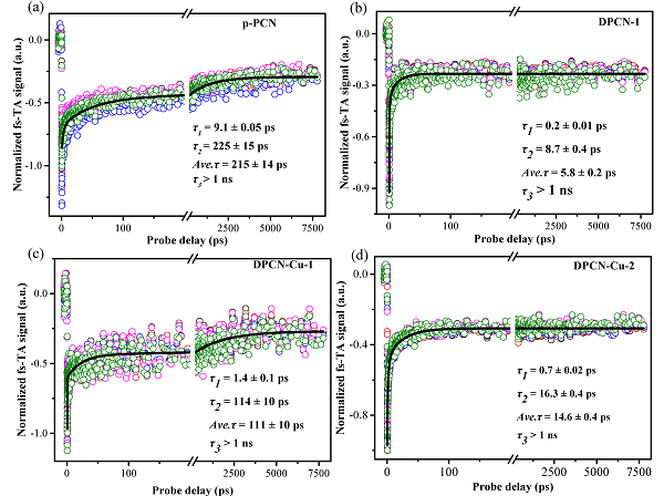 双缺陷PCN以及对比样飞秒瞬态吸收谱结果