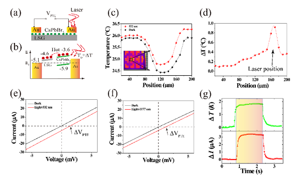 在此基础上,利用光热电理论模型以及温度/光电流变化曲线充分证明了该器件的光热电效应机制。
