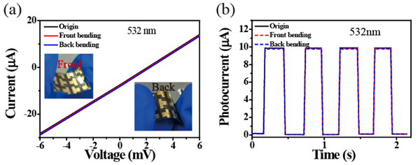 这项工作表明,LSG/CsPbBr3器件是室温下构建高性能、柔性、自驱动超宽带探测器有潜力的候选材料,为未来自驱动柔性的超宽带、高灵敏度新型光电探测器研究提供理论基础和技术支撑。