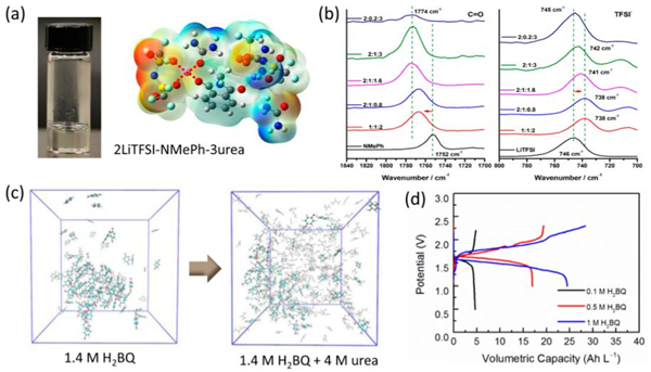 (a)LiTFSI-NMePh-urea低共熔电解液的光学照片和分子静电势能表面;