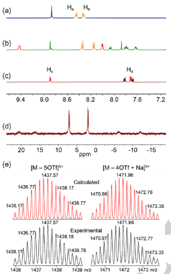 (b)聚合物包裹金属笼带形成纳米颗粒的示意图;
