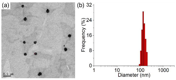 图四、纳米制剂(MNPs)的TEM图和粒径尺寸