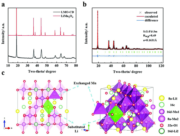 近日,北京大学深圳研究生院潘锋教授和郑家新副教授(共同通讯作者)通过结合实验和大量从头计算,证明了LMO中Mn3+O6八面体的单个Jahn-Teller畸变之间存在协同效应,被命名为协同Jahn-Teller畸变(CJTD),这是一个难以获得超过一个锂插层容量的原因所在。同时,进一步揭示了通过在尖晶石晶格中引入阳离子无序(Mn位的过量Li、Li/Mn交换)可以内在地抑制Mn3+O6八面体中的CJTD。具体来说,阳离子无序可以破坏Mn3+排列的对称性,从而破坏单个JT中心产生的畸变的关联,并防止Mn3+-O键沿一个方向扭曲。有趣的是,由于抑制了CJTD,尖晶石型LMO中的原始八面体空位被激活,可以用作额外的Li+存储位点,从而在微米尺寸LMO中获得双倍容量并具有良好的可逆循环稳定性。相关研究成果以“Double the Capacity of Manganese Spinel for Lithium-Ion Storage by Suppression of Cooperative Jahn–Teller Distortion”为题发表在Adv. Energy Mater.上。