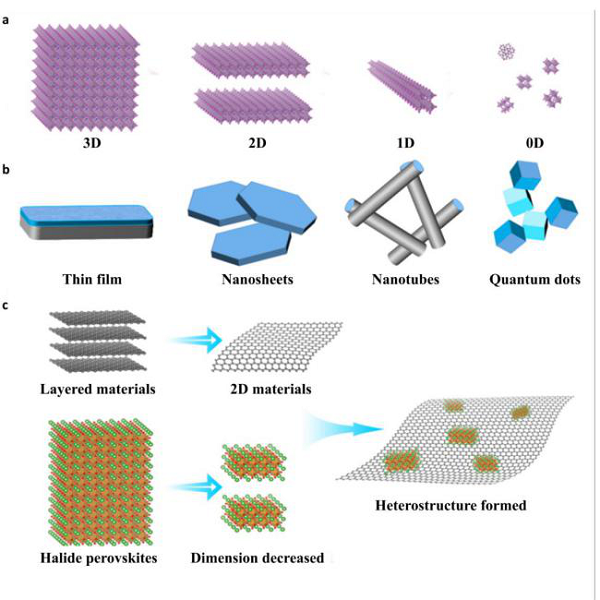 图3:3D至0D卤化物钙钛矿图及异质结构的结构设计