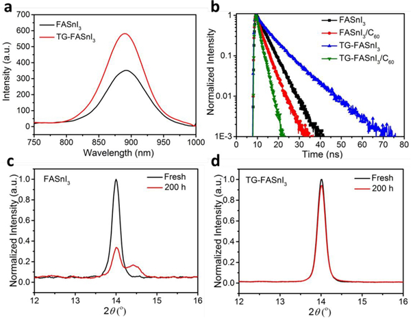 (a)FASnI3和TG-FASnI3膜的PL光谱;