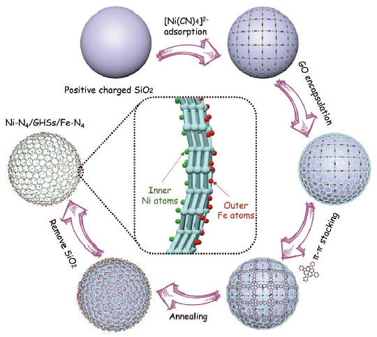 Ni-N4/GHSs/Fe-N4催化剂的合成示意图
