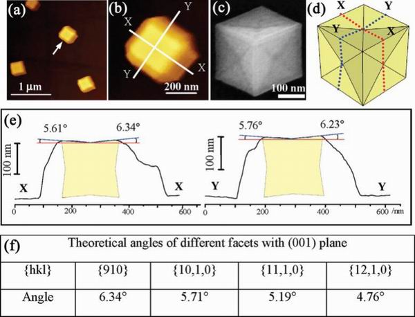 图15 利用原子力显微技术和数学公式法确定内凹多面体单晶的晶面指数
