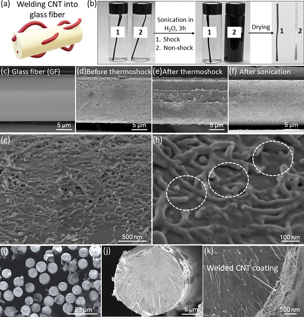 (i-k)焊接CNT/玻璃纤维的横截面图。