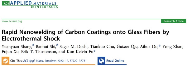 文献链接:Rapid nano-welding of carbon coatings onto glass fibers by electrothermal shock (ACS Appl. Mater. Interfaces, 2020, DOI: 10.1021/acsami.0c09549)