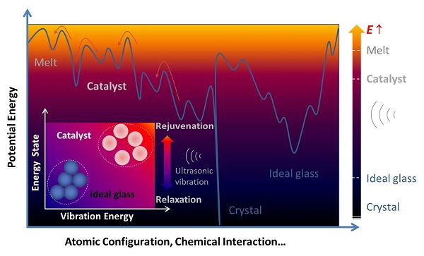 图 3. 超声应力振荡对非晶合金能量调控示意图。
