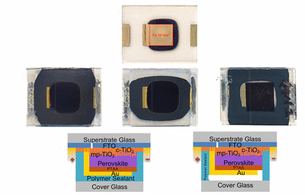 混合钙钛矿太阳能电池在太阳光下工作时会发热,钙钛矿材料中有机成分,尤其是常用的甲基铵阳离子,会发生热分解。封装可以使这种反应达到平衡来抑制分解,并防止暴露于有害的环境湿气。Ho-Baillie团队首创气相色谱-质谱法来检测挥发性产物,研究了一系列封装的钙钛矿薄膜和器件。低成本聚合物压封/玻璃堆叠封装可有效抑制气体转移,并使含甲基铵的钙钛矿太阳能电池能够通过要求苛刻的国际电工委员会(IEC)61215:2016潮湿和湿气冻结测试,太阳能电池模块能够经受1800多个热循环(–40°至85°C)和75个湿度循环老化测试。