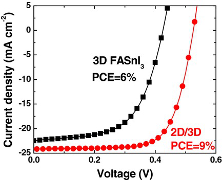 3D有机-无机杂化钙钛矿太阳能电池的性能虽然以惊人的速度被提高,但较差的稳定性阻碍其商业化应用。相对于3D混合钙钛矿,低维(即2D)混合钙钛矿表现出更高的湿度稳定性,为稳定钙钛矿光伏器件提供了新方法。Giulia Grancini等在这篇综述中讨论了二维钙钛矿的最新技术,概述了结构和材料工程方面以及光学和光物理性质。此外,文章还讨论了3D钙钛矿的最新发展及主要局限性,并评估了2D钙钛矿在稳定性方面的优势。最后回顾了3D/2D混合维钙钛矿同时提高器件效率和稳定性的方法所取得的最新成就,为钙钛矿太阳能电池的商业应用铺平了道路。