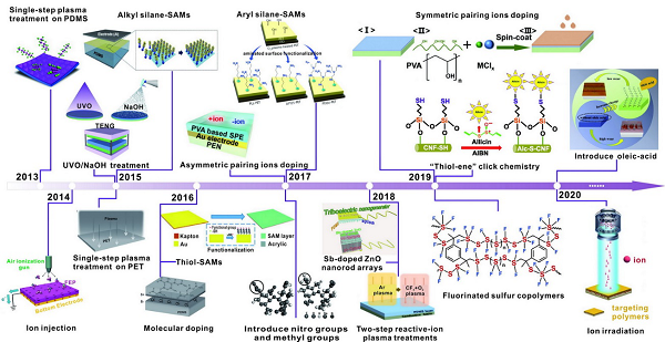 图 用以提高TENG电荷密度的化学改性方法的时间线