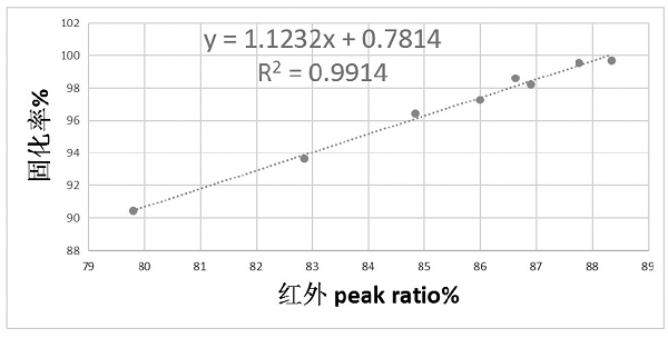 固化率是表征胶体样品在经过物理固化或化学固化前后的固化程度的表征。使用FTIR对固化率测试内容包括:可以观察样品在固化过程中官能团的断裂和重组;固化反应的机理;判断固化反应的程度;测试样品的固化率等。