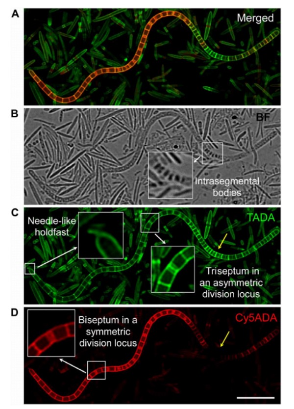图4.梭状芽胞杆菌显示出不同的细胞生长和分裂模式