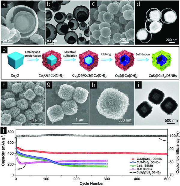 (f-i)CuS@CoS2 DSNB的SEM和TEM图像。