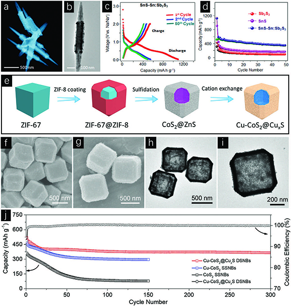 图一、不同结构和组成的混合金属硫化物用于钠离子电池负极
