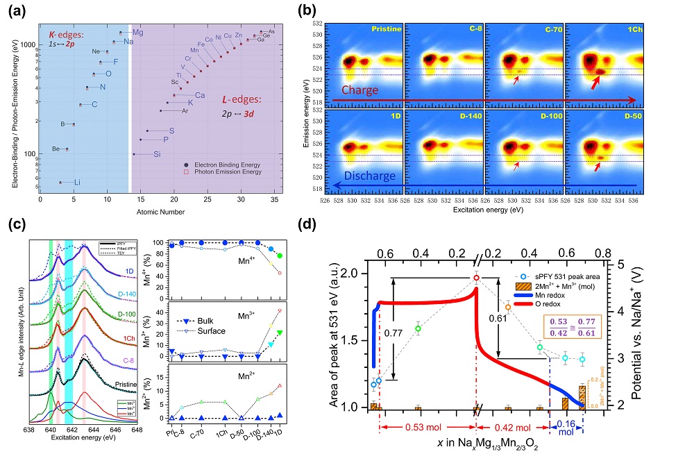 (d)通过Mn-L mRIXS-iPFY和O-K mRIXS-sPFY对Mn和O氧化还原反应进行定量分析。