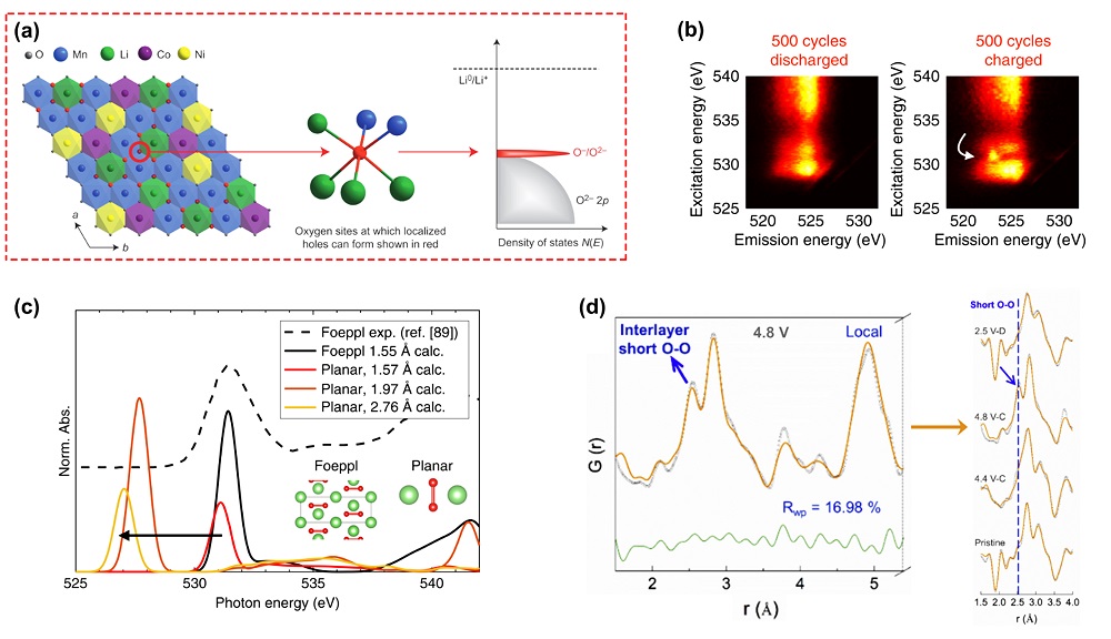 (a)Li1.2Ni0.13Co0.13Mn0.54O2材料中存在电子空穴的晶格氧示意图