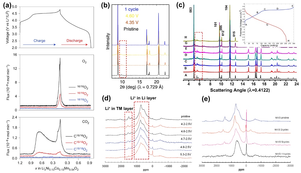 (a)富锂氧化物产生O2的首个DEMS证据;