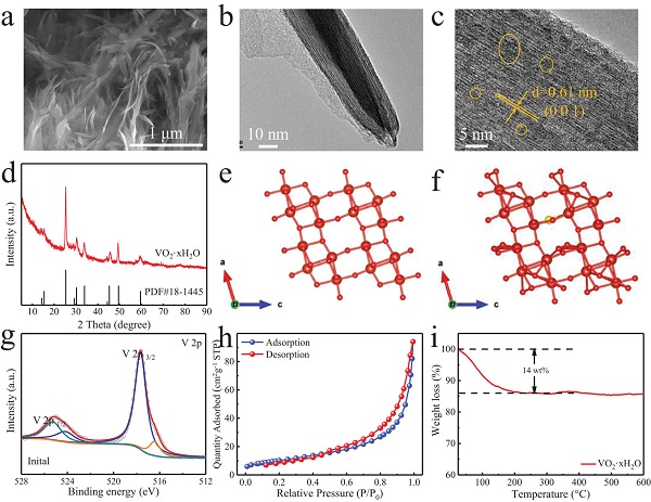 (a-c)HVO的SEM图像,TEM图像和HR-TEM图像。
