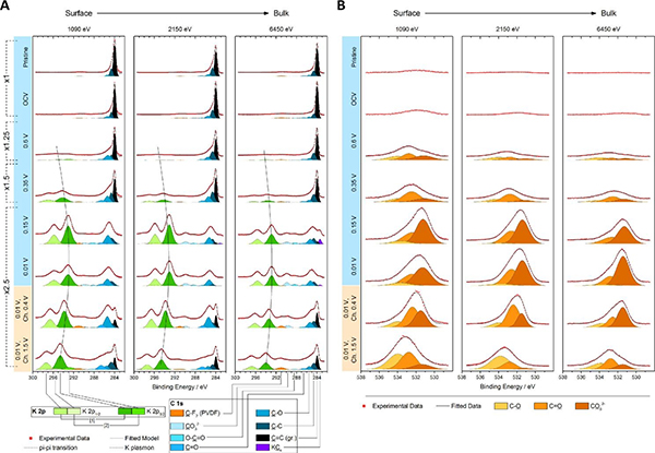 (A-B)在三种不同光子能量下测量C 1s-K 2p和O 1s的HAXPES光谱