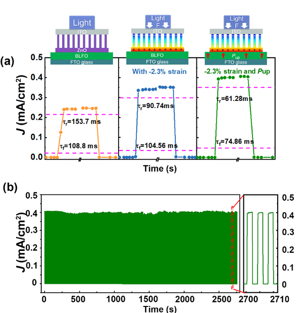 图3:BLFO/ZnO异质结具有良好的光电响应性能,同时可以受到外电场极化作用的调制。