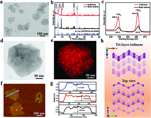 图二 碘烯的形貌和结构表征