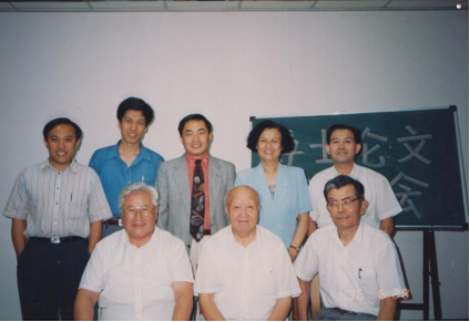 1996年,李来风博士论文答辩合影,前排右起:洪朝生,师昌绪,关振铎;
