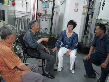 2012年8月洪先生在建成的低温测试平台实验室,左起:周远,洪朝生,张丽萍,李来风