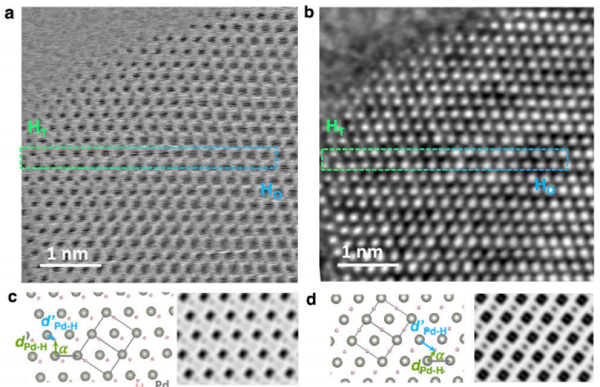 解决表面和界面上的间隙氢原子对于理解金属氢化物的机械和物理化学特性至关重要。尽管氢化钯(Pd)在储氢和电催化中具有重要的应用,但在表面附近的氢化钯上的间隙氢原子位置仍未确定。清华大学李佳、干林&南方HTH官网地址 大学谢琳通过使用iDPC-STEM对Pd纳米颗粒中吸收的氢原子进行的第一个直接成像。与在主体中为氢确定的八面体间隙位置相反,地下氢原子被直接识别为占据四面体间隙。密度泛函理论计算表明,表面下氢原子的数量和占据类型在微调Pd表面的电子结构和相关的化学反应性方面起着不可或缺的作用。