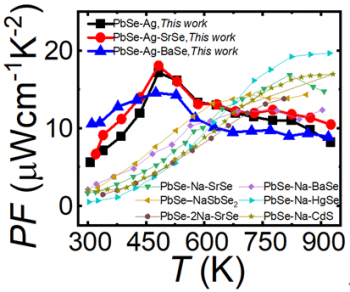 图3. 该研究中功率因子和其它典型的p型PbSe热电材料功率因子的比较。