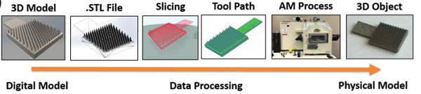 3D打印,又称为增材制造,是一种新兴技术,通过逐层策略为复杂或定制零件的设计和制造提供极大的灵活性,从而带来制造技术的革命。例如,一个复杂的产品之前由多个组件组装而成,现在可以方便地重新设计和打印为一个集成组件,从而实现了极大的设计自主性。现已开发出七类3D打印工艺,包括还原聚合、材料喷射、粘合剂喷射、材料挤出、片材层压、粉末床熔融和定向能量沉积,以印刷各种材料,包括金属、聚合物、陶瓷和复合材料。[1]