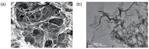 图2 (a) N/S-GA-2的FESEM图像和(b) N/S-GA-2的TEM图像