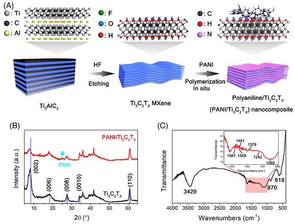 图4 PANI/Ti3C2Tx纳米复合材料的合成与表征