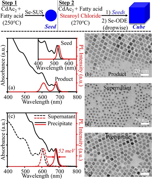 (顶部)立方型CdSe纳米晶体的合成方案。