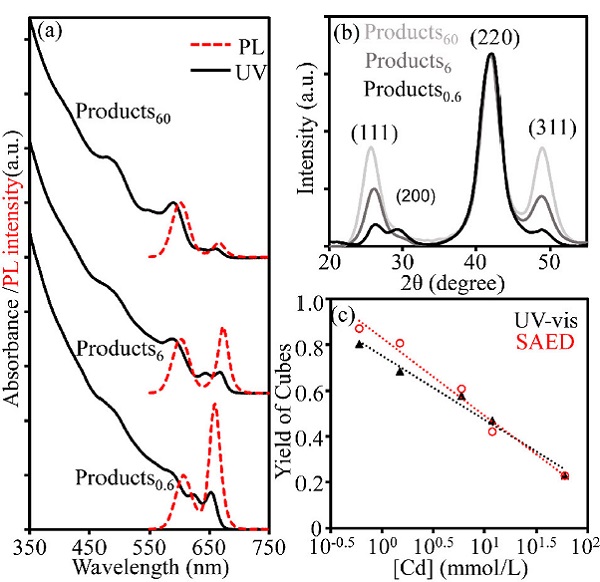(b)SAED图像测定的立方型QDs的提及产率。
