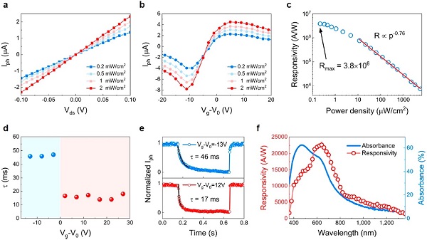 图4 采用倾斜Bi2O2Se作为光吸收层的石墨烯基光电晶体管