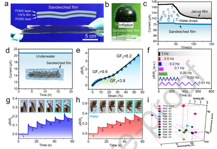 (a)CNTs/PDMS Janus薄膜的传感性能;