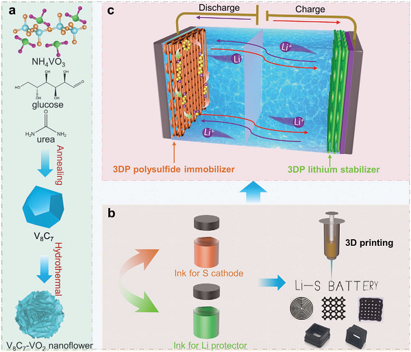7、Adv. Mater:3D打印V8C7–VO2双功能框架作为锂硫电池的有效多硫化物固定剂和锂稳定剂