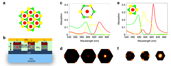 图10 三通道、二维、反厄米特PIN Si超表面的光学设计与仿真